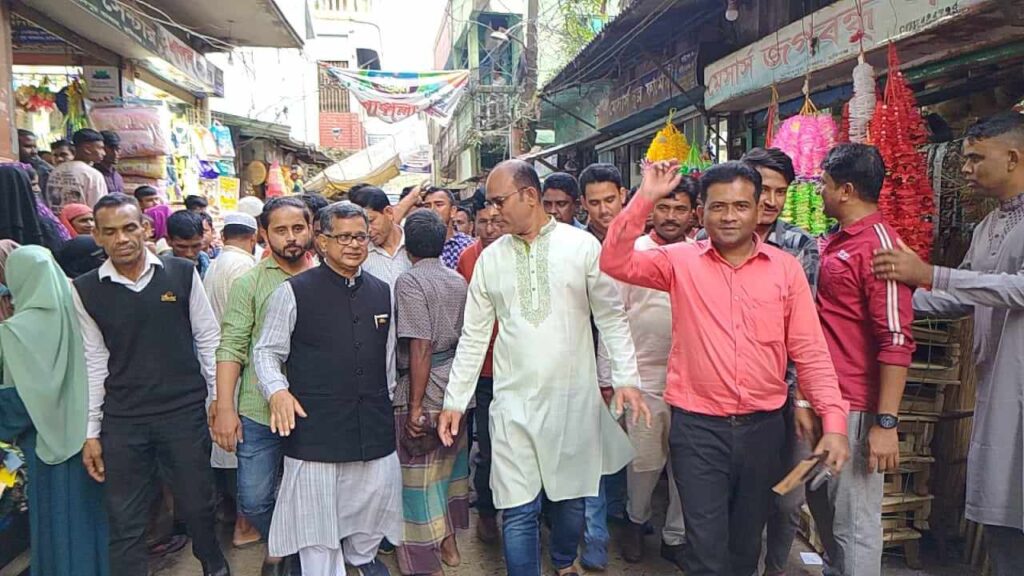 মাধবপুর বাজারে এডভোকেট মাহবুব আলীর গণসংযোগ