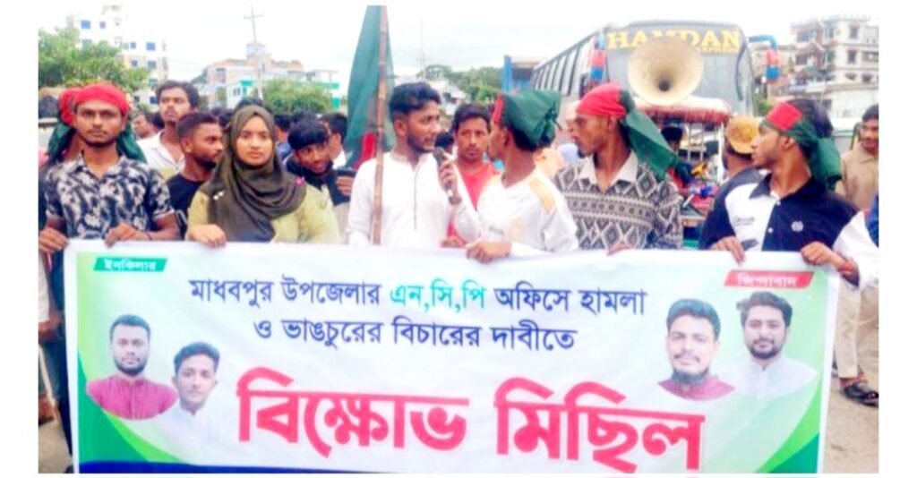 মাধবপুরে এনসিপির অফিস ও সাইনবোর্ড ভেঙ্গে লাইভে এসে এক যুবকের উল্লাস