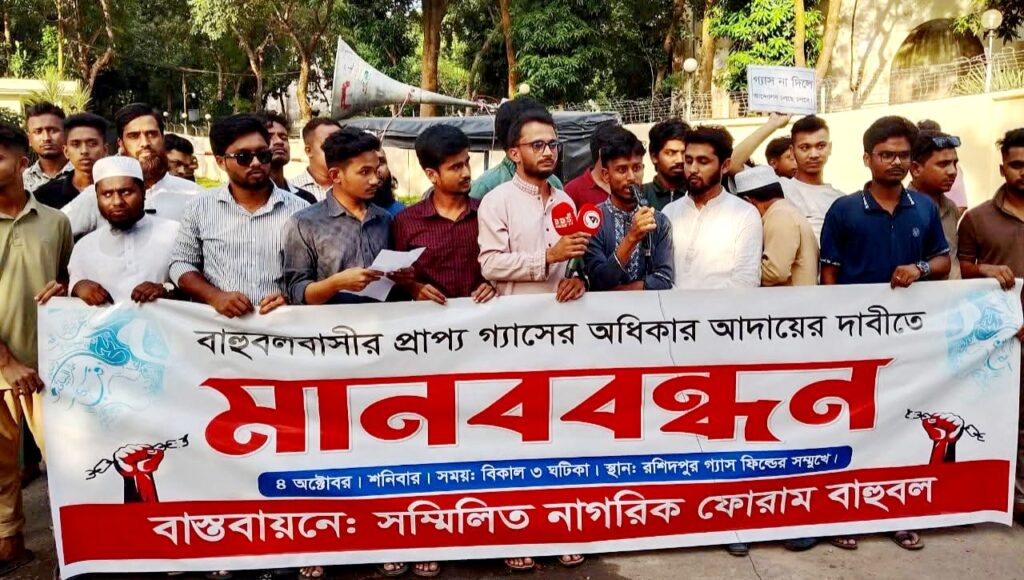 বাহুবলের প্রতিটি ঘরে গ্যাস সংযোগের দাবিতে মানববন্ধন